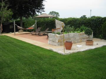 Ein verwahrloster Garten und ein alter ungepflegter Pool – Erschaffung einer zusätzlichen Wohlfühlterrasse mit einem großen Hochbeet für die Eigenversorgung.